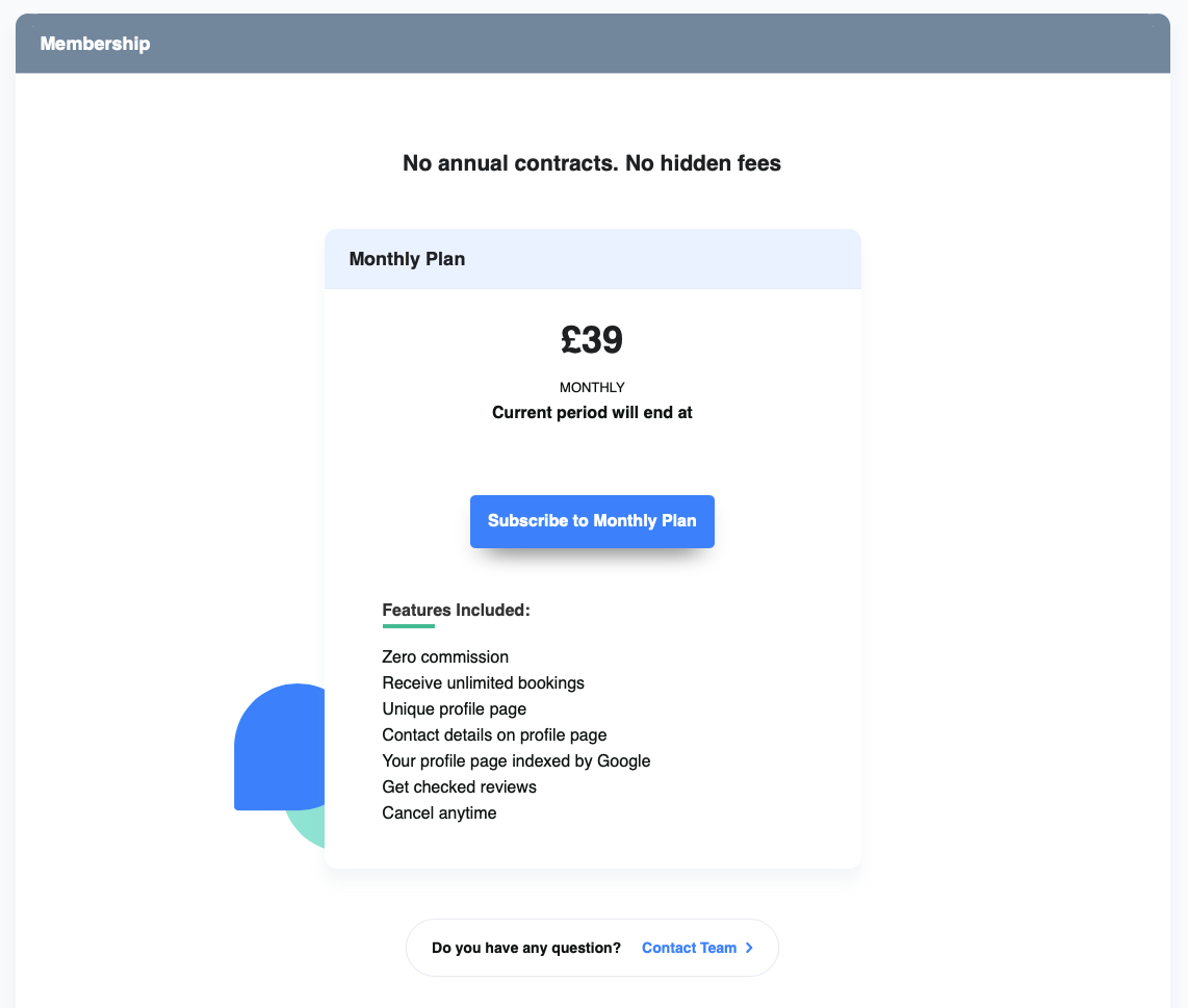 If you have an active subscription your contact details will appear on this page. So the Customers can contact you directly.