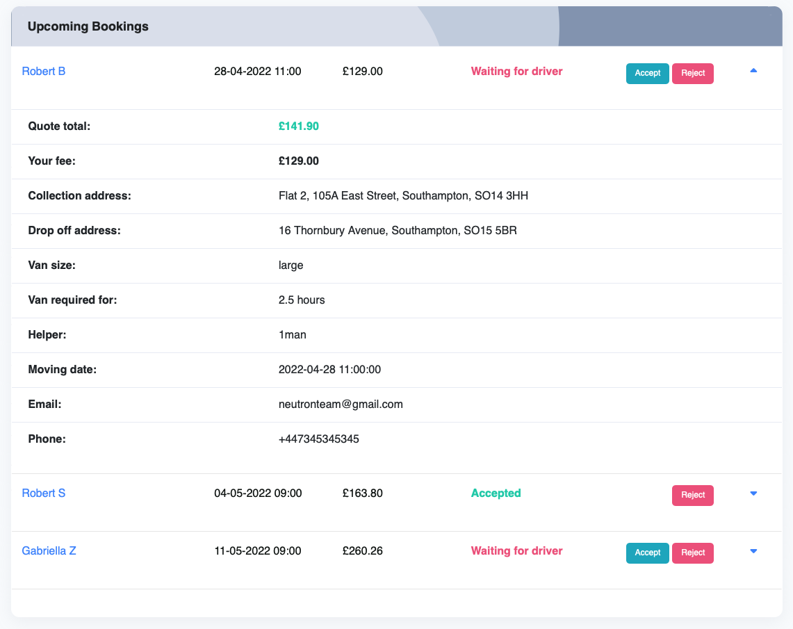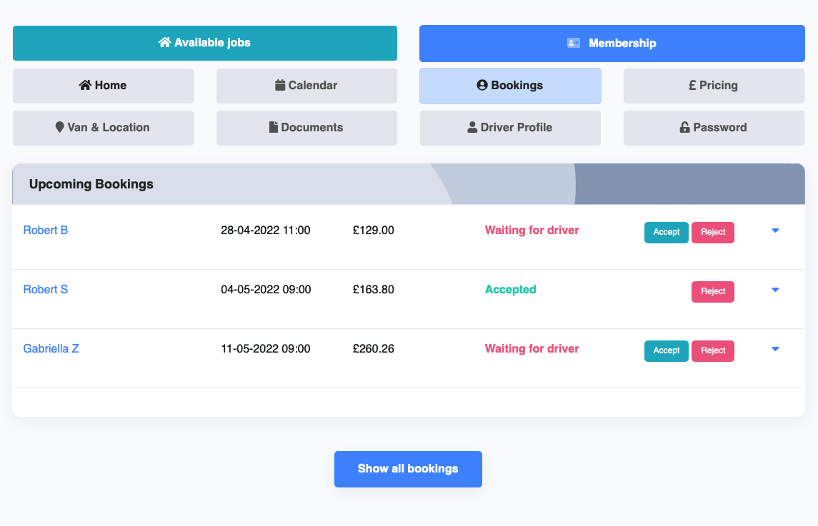 On the booking page, you can Accept or Reject a booking. Please be aware when you reject a booking, as this may result in a negative review on your page. Please don’t do that if you just don’t want or like to do that job.