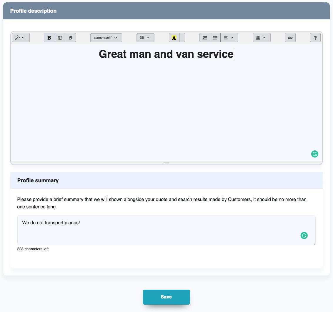 Edit your profile description and your service summary. Then don’t forget to hit the save button.