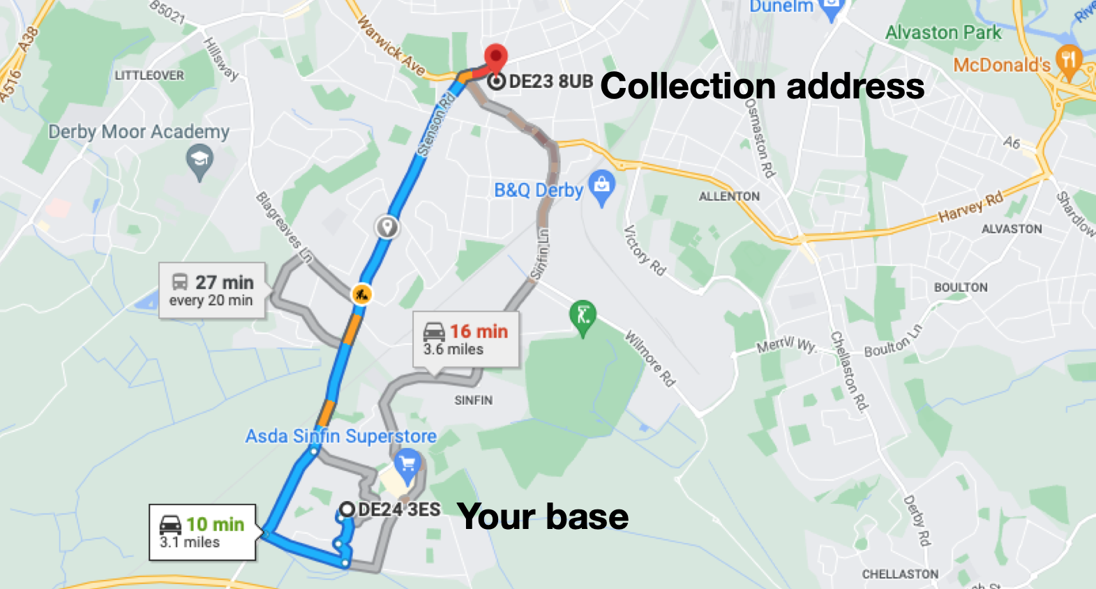 - Collection address: 25 Derby Lane, Derby, DE23 8UB